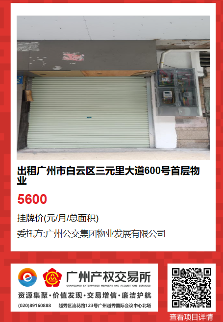 現有廣州市白云區三元里大道600號首層物業出租項目,該項目在廣州公有物業出租平臺網站自掛牌公開招租,歡迎有意向的企業法人或自然人(含個體工商戶)參加應租。現將有關事項說明如下: