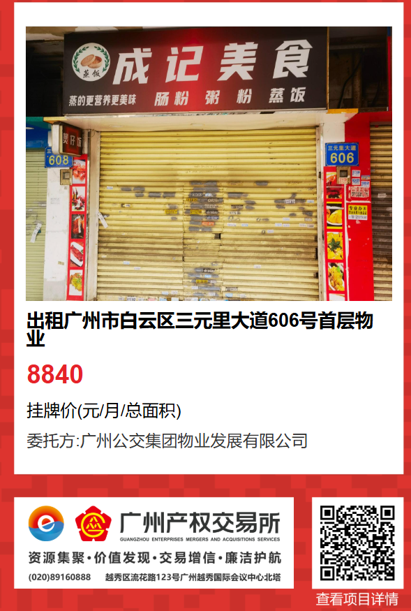 現(xiàn)有廣州市白云區(qū)三元里大道606號首層物業(yè)出租項目,該項目在廣州公有物業(yè)出租平臺網(wǎng)站自掛牌公開招租,歡迎有意向的企業(yè)法人或自然人(含個體工商戶)參加應(yīng)租?,F(xiàn)將有關(guān)事項說明如下: