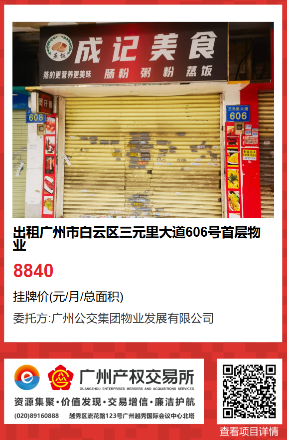 (三)物業(yè)地址:廣州市白云區(qū)三元里大道606號首層。