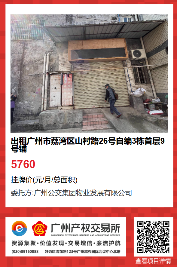 (一)項目名稱:出租廣州市荔灣區(qū)山村路26號自編3棟首層9號鋪物業(yè)。