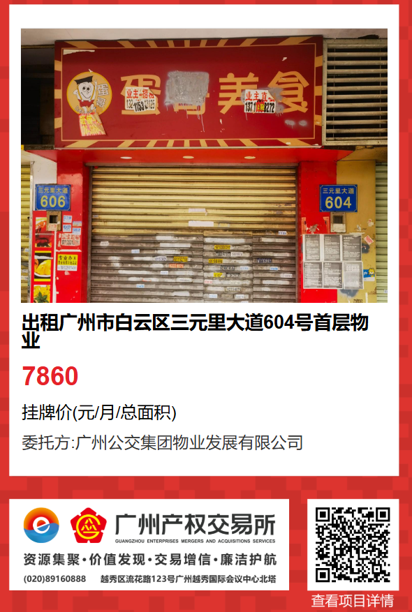 現(xiàn)有廣州市白云區(qū)三元里大道604號首層物業(yè)出租項目,該項目在廣州公有物業(yè)出租平臺網(wǎng)站自掛牌公開招租,歡迎有意向的企業(yè)法人或自然人(含個體工商戶)參加應租。現(xiàn)將有關事項說明如下: