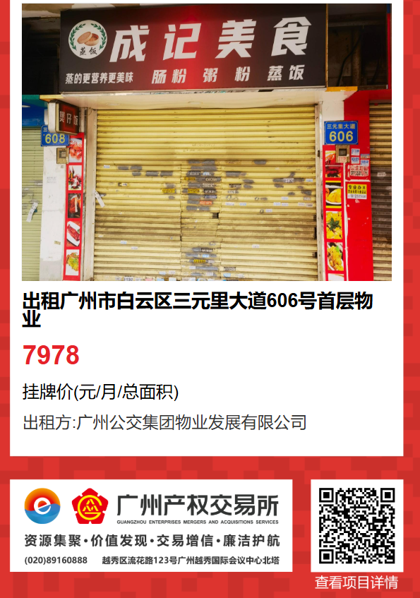現有廣州市白云區三元里大道606號首層物業出租項目,該項目在廣州公有物業出租平臺網站自掛牌公開招租,歡迎有意向的企業法人或自然人(含個體工商戶)參加應租?,F將有關事項說明如下: